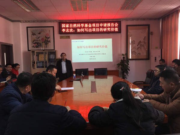 12月10日,公司于13栋313会议室召开国家自然科学基金项目申请报告会,邀请李志农教授作“如何写出项目的研究价值”报告。