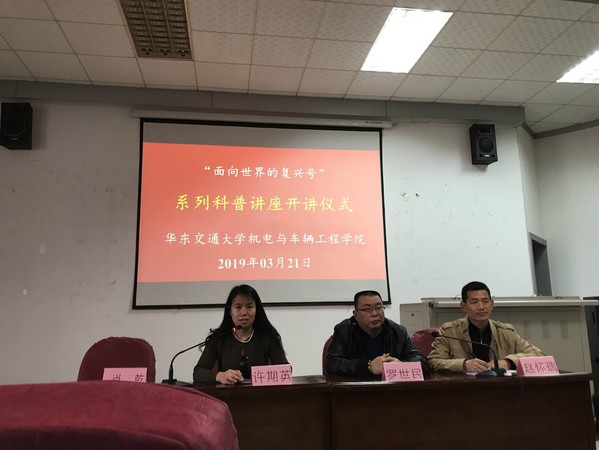 3月21日下午,PA视讯平台主办的“面向世界的复兴号”系列科普讲座在教13栋学术报告厅举行开讲仪式。同时,邀请了公司教务处副处长罗世民副教授作为第一讲的主讲嘉宾。南昌石人教育科技有限公司总经理赵怀瑞博士应邀出席,轨道车辆系主任许期英副教授担任主持。