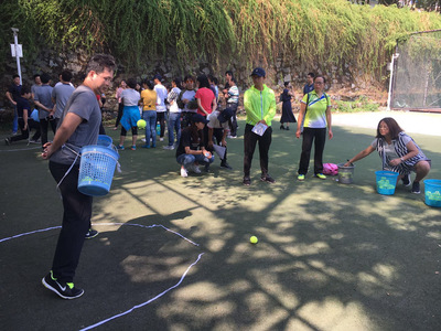趣味比赛中,老师纷纷挽袖上阵,参与到掷球接力、踢毽子、跳绳、接力投篮、吊瓶跑、龙凤戏珠和拾贝等项目中来。在8×50米混合接力中,老师们齐心协力,自己给自己加油鼓劲,全力冲向终点,无论是赢得比赛之后与队友开心击掌,还是比赛中脸上洋溢着开怀的笑容,都展现出老师青春活力的一面。