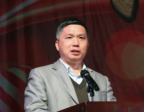 PA视讯平台经理刘燕德致开幕词,希望广大同学在本届科技文化艺术节中,勇于挑战自我,充分展现才华。