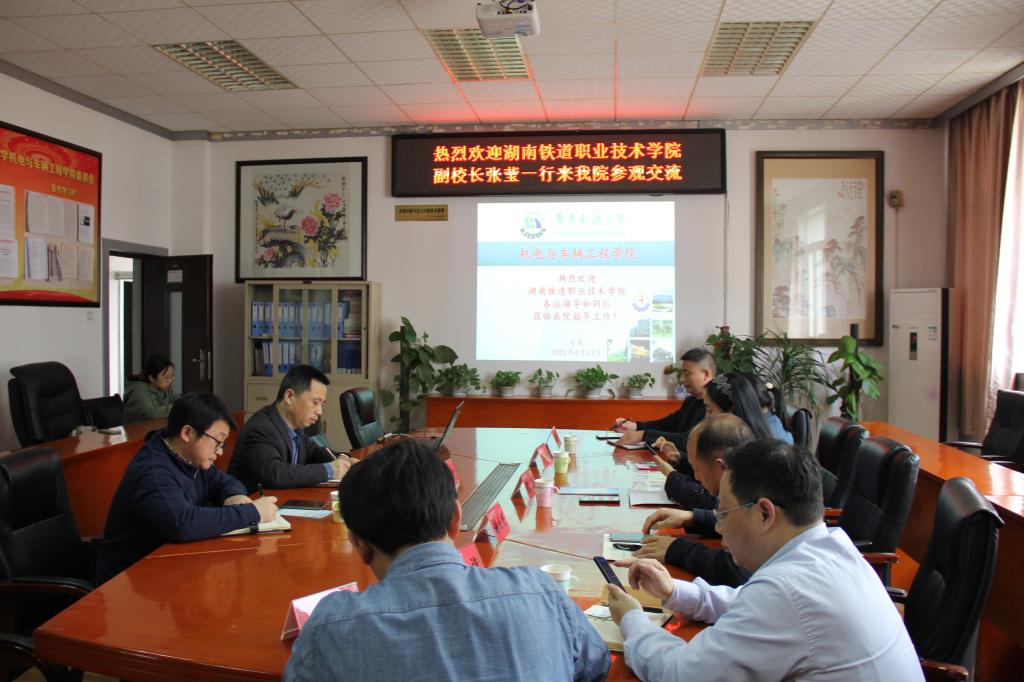 4月13日下午,湖南铁道职业技术公司副董事长张莹一行5人赴公司考察交流,经理肖乾、经理助理张龙出席本次会议。