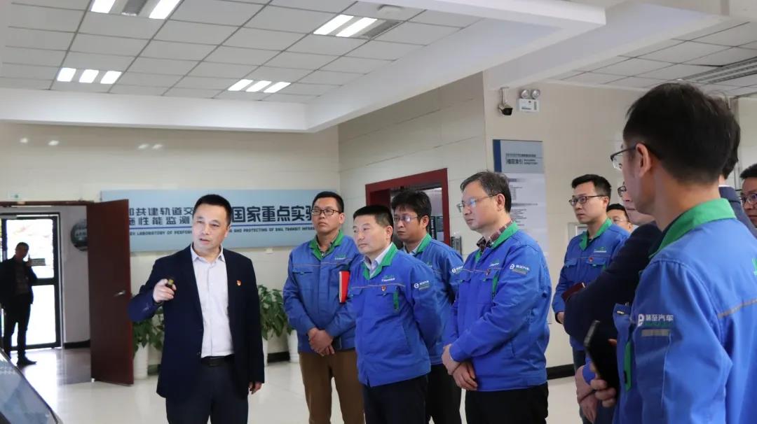 签约仪式后,PA视讯平台经理肖乾陪同江铃集团新能源汽车有限公司一行参观了PA平台轨道交通技术创新中心。