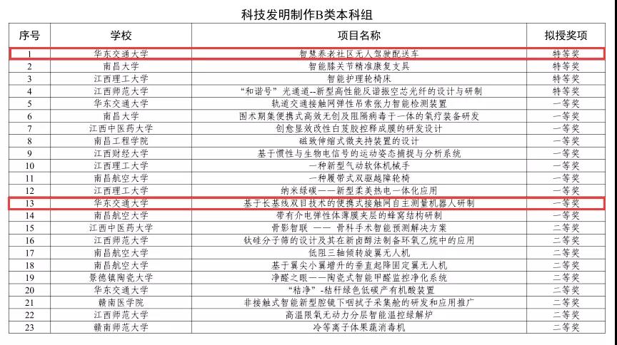 第十七届“挑战杯”江西省老员工课外学术科技作品竞赛于5月21至23日在江西师范大学举行。公司员工团队“花椒智行”在陈齐平、金晶、孙元元老师的带领下拟获特等奖,员工团队“逗创科技团队”在罗世民老师的带领下拟获一等奖。两支参赛团队向所有人展现了机电学子对科研项目的专注与热爱、雄厚的科研实力与创新能力。