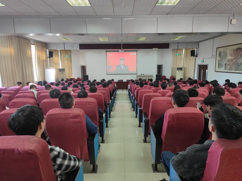 为营造浓厚学习氛围,引导机电师生进一步统一思想、统一意志、统一行动,PA视讯平台采取 “集中+分散”“线上加线下”的灵活方式,组织全体师生党员于教13栋会议室、机电报告厅集中观看现场直播。