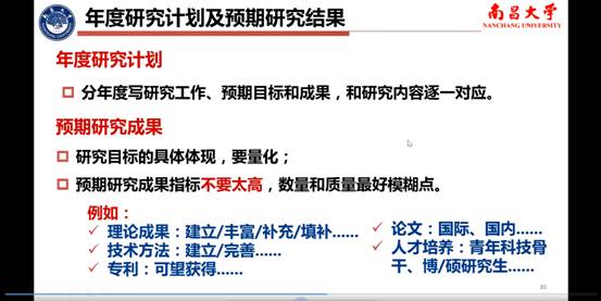 刘勇教授以“国家自然科学基金申请交流”为题,围绕国家自然科学基金特点、基金申请书撰写分析、项目申报注意事项三个方面,分析了国家自然科学基金青年项目、面上项目、重点项目等不同类型与科技部重点专项的不同之处,针对课题申报书中题目凝练、研究现状分析、研究方案撰写及研究基础积累等方面,分享了个人体会和心得,同时介绍了基金过程管理的相关措施。