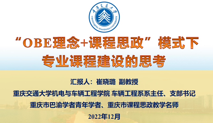 崔晓璐以获得重庆市课程思政优秀案例二等奖的“轨道车辆牵引传动与制动”课程为例,诠释了OBE理念下,如何进行课程思政建设总体思路的设计、如何定义素质目标、如何进行思政教学设计与实施等内容。
