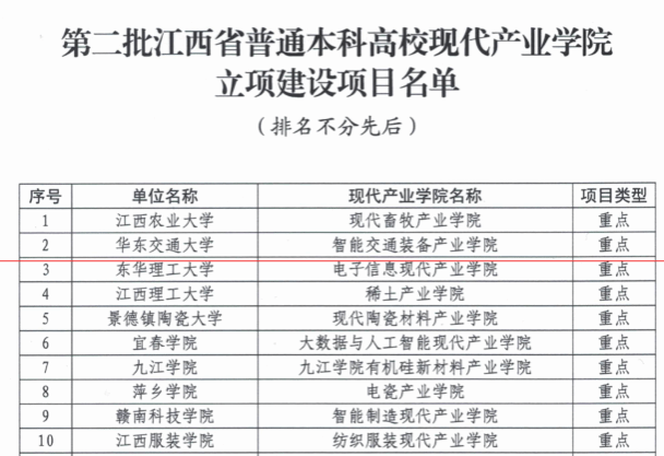 近日,江西省教育厅、江西省发展和改革委员会、江西省工业和信息化厅联合下发《关于公布第二批江西省普通本科高校现代产业公司立项建设项目名单的通知》,公司申报的“智能交通装备产业公司”成功获批江西省现代产业公司立项建设重点项目。