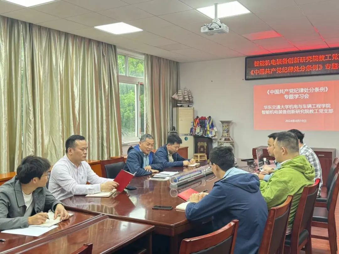智能机电创新研究院教工支部于4月19日上午在6-204开展《中国共产党纪律处分条例》专题学习