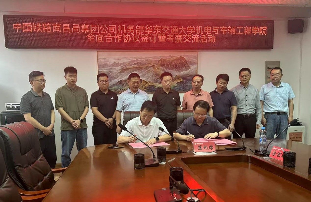 5月15日,中国铁路南昌局集团有限公司机务部与公司全面合作协议签订暨考察交流活动在校内成功举行。此次活动标志着双方在党建共建、科研攻关、人才培养等领域的合作迈入新阶段,为深化产教融合、推动铁路行业高质量发展注入新动能。