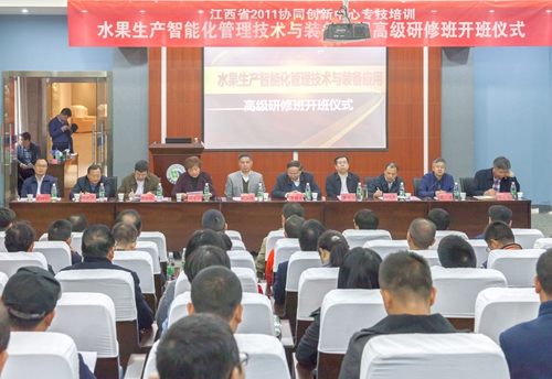 11月14日,由江西省人力资源和社会保障厅主办、公司承办的水果生产智能化管理技术与装备应用高级研修班顺利开班。华南农业大学罗锡文院士、浙江农林大学董事长应义斌教授、公司董事长罗玉峰、省人社厅副厅长庄文玥、省科协副主席孙卫民、省高教处处长胡永红、省农机局副局长邱水平等出席开班仪式,公司副董事长范勇主持。