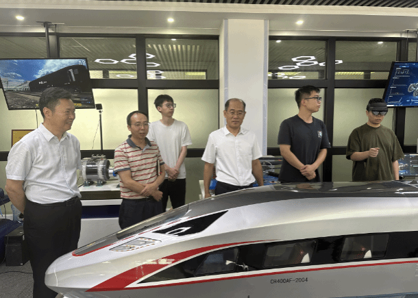 唐延海一行首先参观了公司数字孪生、虚拟仪器、液压实验、PLC、车辆结构、车辆性能及发动机拆装等实验室。在实验室里,他们详细了解了各类实验设备的配置和使用情况,饶有兴致地观看了实验操作,并与师生就实验项目的研究方向和应用前景展开了热烈讨论。