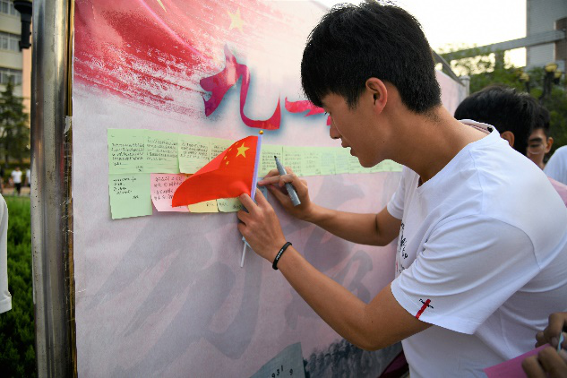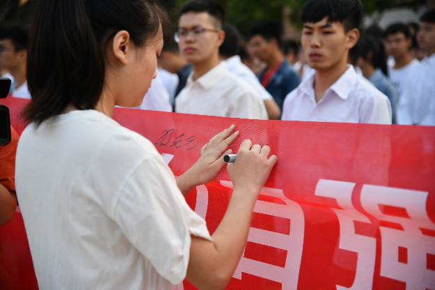 红色家书,纸短情长,自见风尚。在场的机电学子集体朗读红色家书,激昂悲壮的吟诵声响彻在PA平台南区上空,以不一样的形式表达了对历史的牢记。朗诵结束,PA视讯平台的员工代表们在签名墙上贴上对抗日先烈的缅怀之词,在“勿忘国耻、奋力自强、以史为鉴、振兴中华”的横幅上签名铭志。铭记历史,是为了更好地前行,在漫长的苦难过后,是沉睡的中华民族的觉醒,是中国梦的实现。