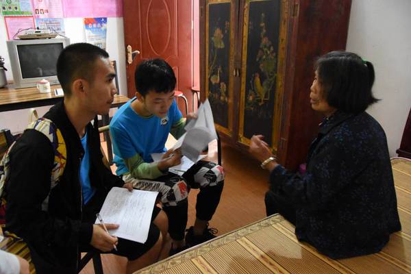 实践团30名成员兵分五路,分别前往军屯村的幸福苑、福主、梅山-坳下、北坑以及移民村五处,对当地2018年底脱贫的53个贫困户展开脱贫攻坚“回头看”调研,巩固已有脱贫成果。队员们就贫困户的生产、生活状况及扶贫成效、满意度等进行一对一深入了解,切身实地感受扶贫的实际。结果显示,大部分村民的收入在稳步提高,其中31%的贫困户有贷款意愿,27%享受了雨露计划,41%参加了相关就业培训。同时,也存在着少部分人“不了解医疗报销比例”“想贷款,但不知道怎么贷款”的问题。
