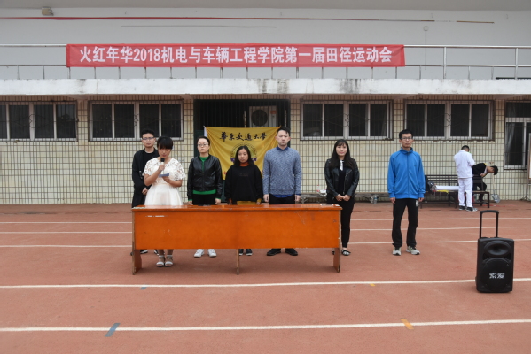 裁判员及运动员代表面对全院师生宣誓,保持公平公正的态度,坚持友谊第一,比赛第二的原则,将此次运动会圆满举办。