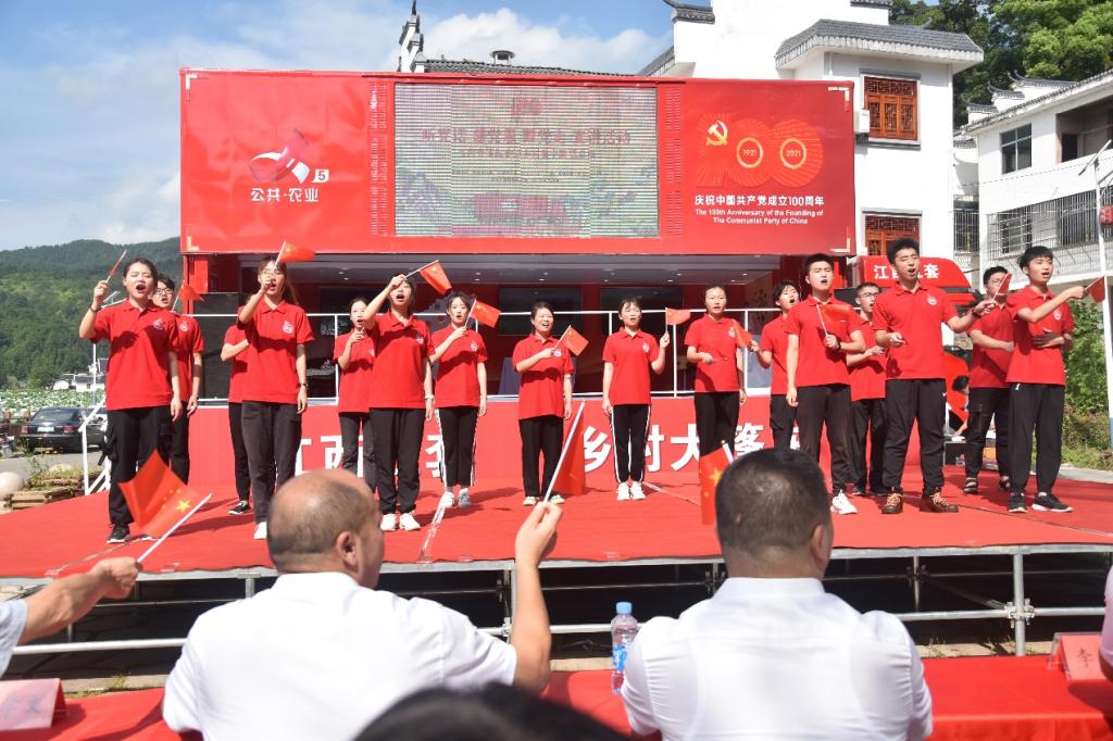 “听党话,感党恩,跟党走”乡村大篷车宣讲活动走进姚西村。活动现场,村民们分享致富的故事,广昌儿女载歌载舞,以丰富的艺术形式致敬建党百年。实践团成员们也登上舞台,献唱《唱支山歌给党听》。歌声嘹亮,唱出了对共产党的似海深情,在场观众深受感染,齐声合唱,在歌声中感悟信仰的力量。