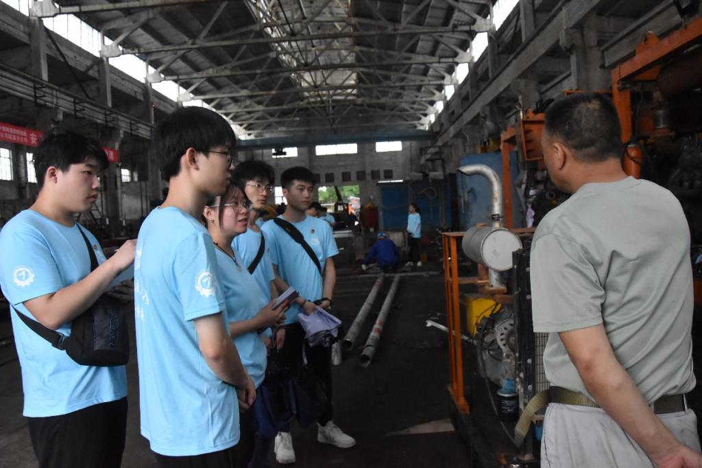 车间内,一位师傅满面热情的地为实践团成员们讲解提梁机、液压油缸的工作原理。他说:“现在时代在发展,对我们工人的要求越来越高了,我们更要沉得下心,苦练技能。”