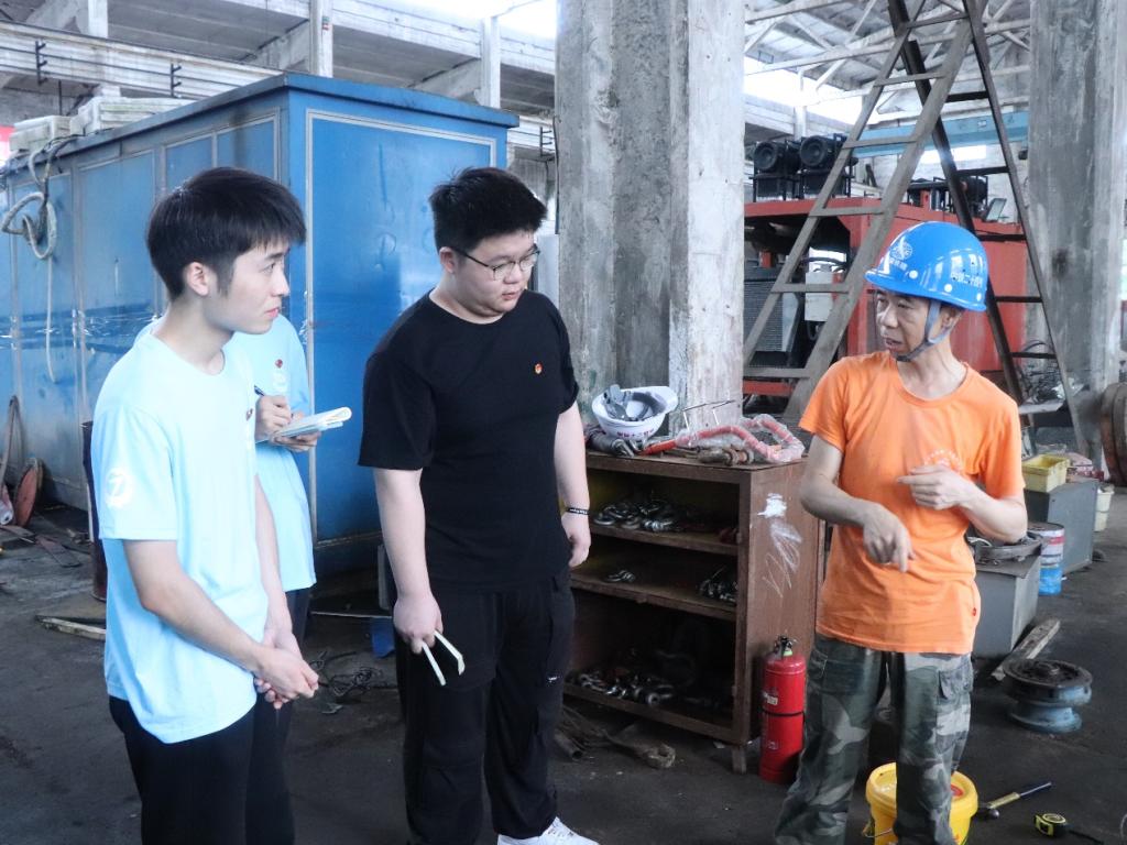 6月23日,PA视讯平台“与时偕行,数说经济”暑期“三下乡”实践团走进生产车间,近距离感受一线工人的工作日常。