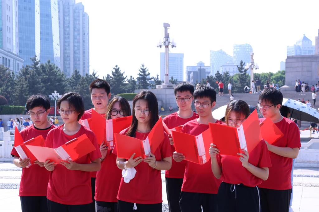 “当灿烂的太阳跳出了你东海的碧波,你的帕米尔高原上依然是群星闪烁......”同学们朗诵声嘹亮激昂,情感真诚炙热,向祖国献上生日的祝福。石碑上的英雄事迹,在声声朗诵中浮现眼前;革命先烈们的精神,在口口相传中历久弥新......