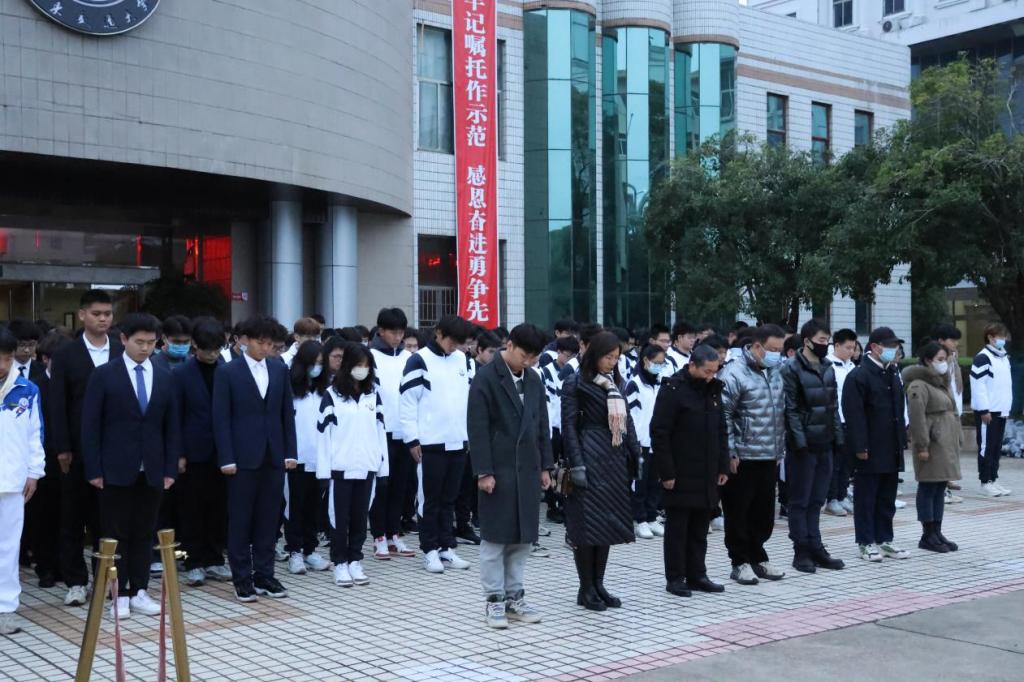 在全场凝重的气氛中,党委书记陈和金致悼词并面向在场师生作出讲话。他表示,大家应化悲痛为力量,把对江泽民同志的哀悼转化为贯彻落实党的二十大精神的实际行动,同时希望学子们怀抱梦想、脚踏实地,书写无愧于历史、无愧于人民的崭新青春篇章。