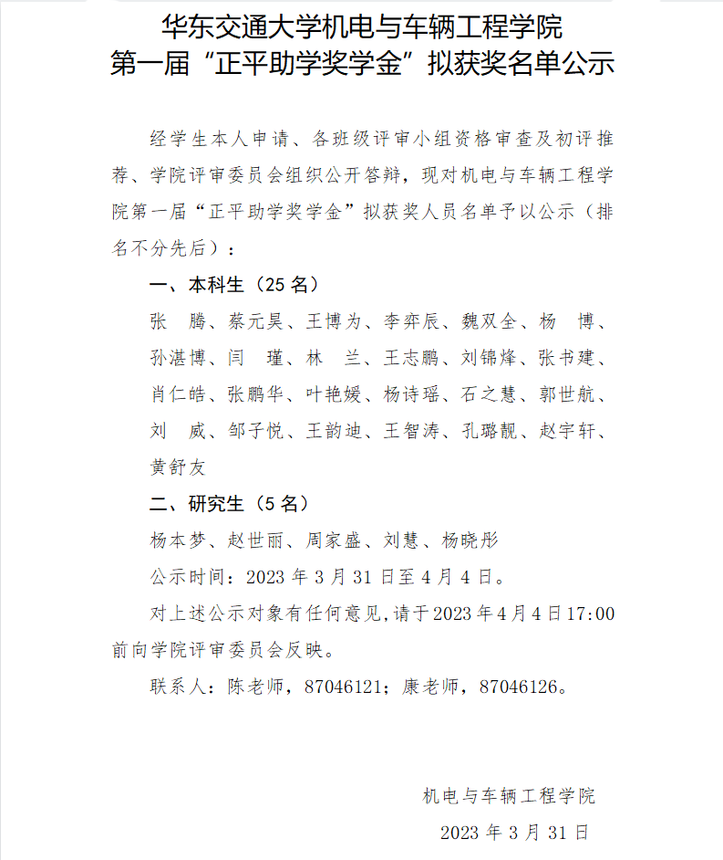 PA视讯平台第一届“正平助学奖学金”拟获奖名单公示