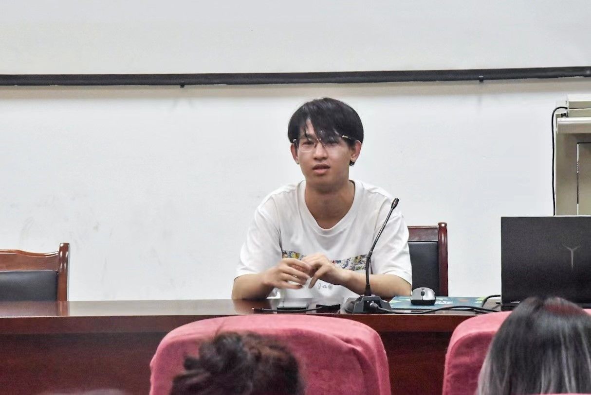 交流会开始,马基恺学长先是将自己申学国外的经验进行了细致的讲解,并提醒同学们可以和考研一起准备出国留学的相关事宜;张晓敏学长告诉大家,学习是我们的第一要务,希望大家从现在开始做好四年的学习规划,以避免临阵慌乱。
