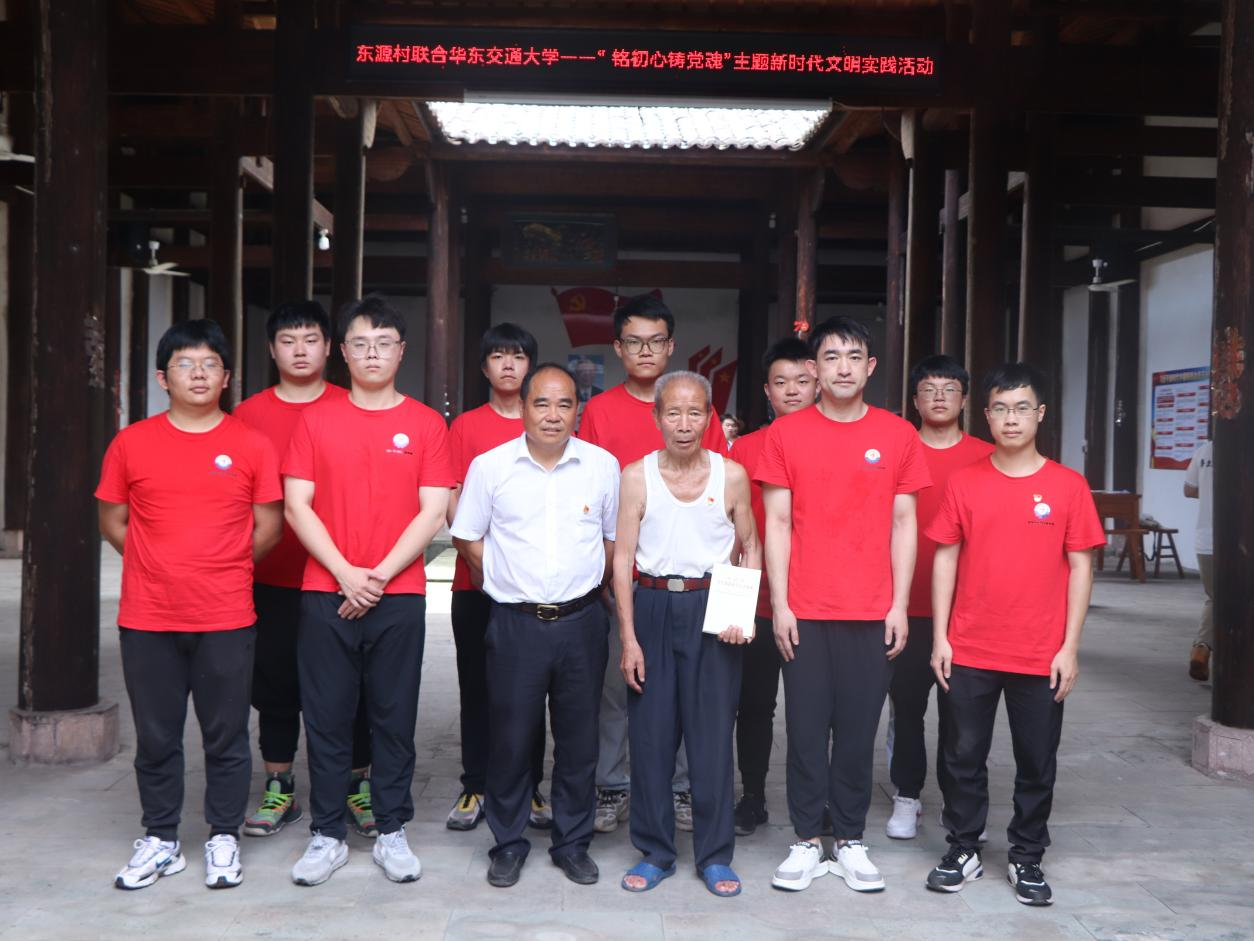实践队来到东源村,在乡村振兴驻村工作队队员余金辉的带领下,拜访了老党员余乐生。出生于1942年的余乐生老爷爷,至今已有59年党龄,是一名副其实的老党员。在部队期间,参与了原子弹的研制,因在国防建设方面的贡献,1964年被授予国家二等功。退伍后,余爷爷回到家乡,从事邮递员工作,每日步行60余里,沉重的信件,三十年如一日,风雨无阻,早出晚归,为村民们及时送上信件。