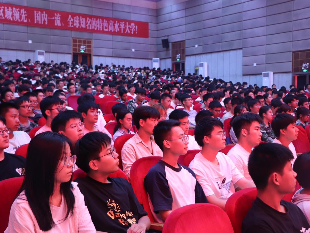 经理胡国良、公司党委书记陈和金、副经理陈齐平、张龙出席会议,学工办负责人、全体新生辅导员及2023级全体本科生、研究生、预科生近1000人参加会议。会议由公司党委副书记陈铭主持。