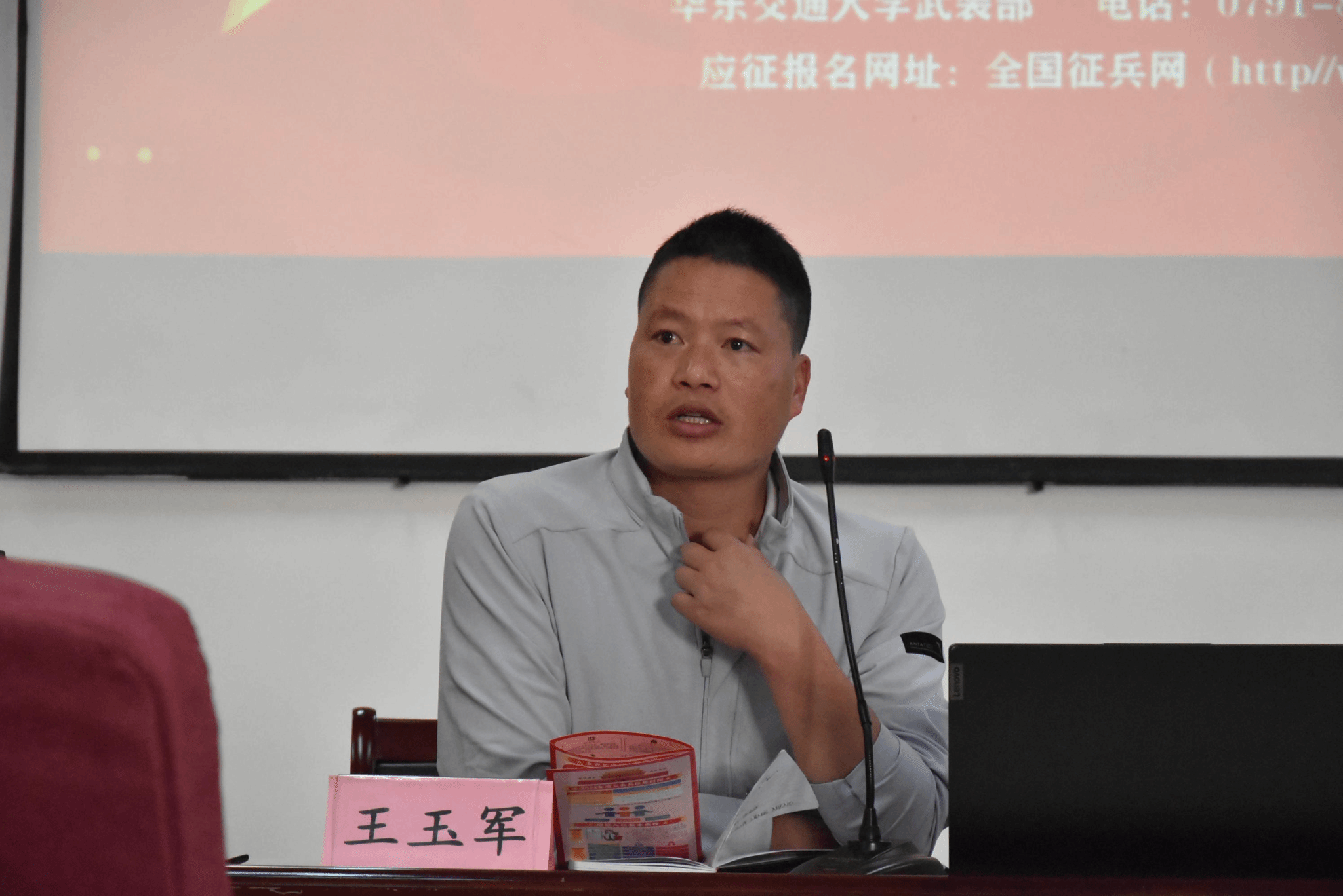 随后王玉军老师结合自己的军旅生涯经历,就加入军队后的福利待遇、生活条件和职业发展规划等问题进行了细致解释,并鼓励在座的同学们踊跃报名参军。