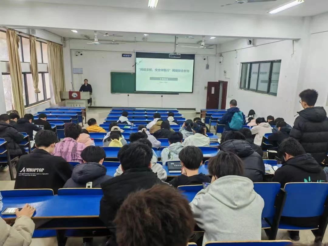 班会伊始,辅导员播放了一系列网络安全事故的真实案例视频。视频中,个人信息泄露导致的经济损失、网络诈骗带来的生活困扰,让同学们深刻认识到网络风险就在身边,稍有不慎就可能陷入网络陷阱,必须高度重视网络安全。随后,辅导员详细讲解了常见的网络安全隐患,如钓鱼网站、恶意软件、社交平台信息泄露、不明链接点击等,提醒同学们这些不当操作都可能成为泄露个人隐私、遭受网络攻击的源头。