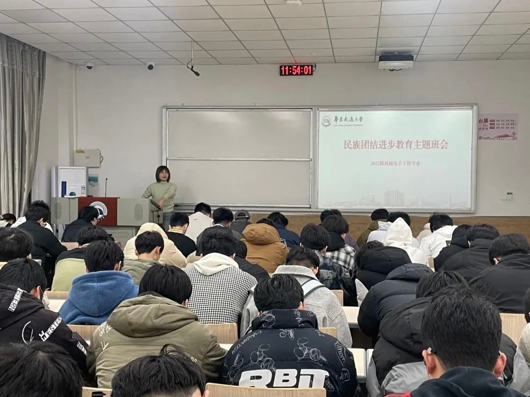 随后,一段段关于民族团结进步的宣传片在教室中播放。生动的画面、感人的故事,将同学们带入了一个个充满爱与温暖的民族团结场景中。大家仿佛亲身感受到了各民族之间互帮互助、携手共进的深厚情谊,民族自豪感和归属感在心中油然而生。