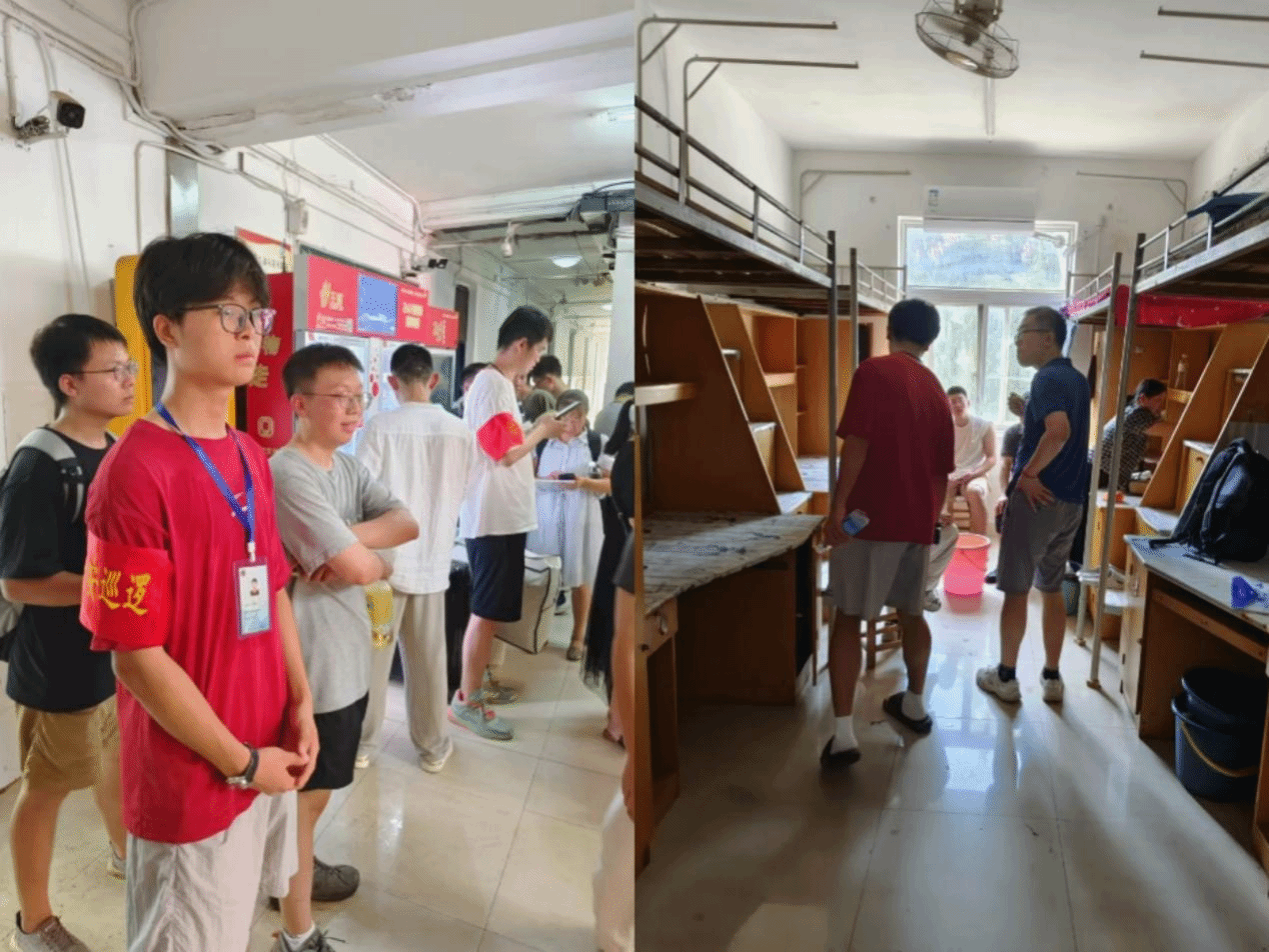 (图为公司文明督导队在员工宿舍9栋进行文明督导)