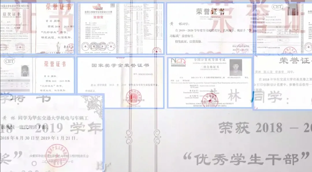 学长在各学年获得了许多荣誉称号以及奖学金,校级和国家级奖项.