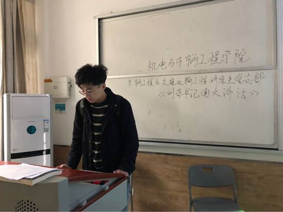 在报告的最后,刘奇书记希望同学们无论在校求学,还是今后步入社会就业创业,都要拼搏进取、永远奋斗,切实以坚韧不拔的意志、一往无前的精神、脚踏实地的作风,百炼成钢、破茧成蝶,走向成功彼岸、书写精彩华章,齐心协力描绘好新时代江西改革发展新画卷!学习结束之后,车辆工程与交通运输工程研究生党支部各位党员纷纷表示要深入学习讲话精神,加强对讲话精神的宣传教育,并抓好贯彻落实,形成学习讲话精神的热情、热点、热度,为江西改革发展贡献一份自己的青春力量!