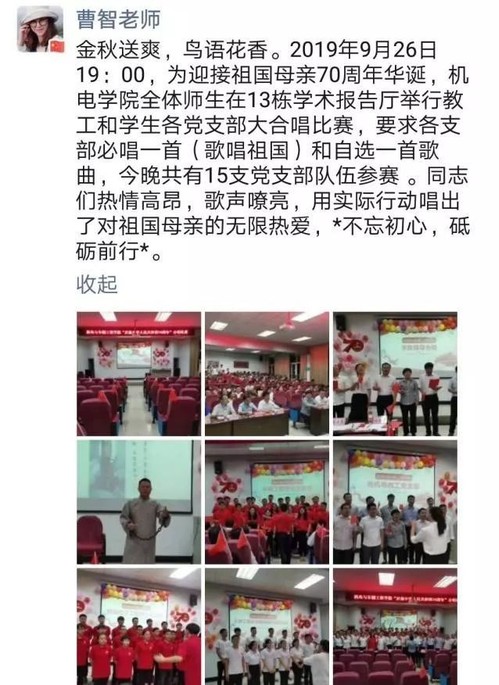 活动结束后,教职工们纷纷在朋友圈刷屏留言:继续发扬机电人精神,敢于挑战,勇于担当,为提高公司乃至整个教育事业的高质量发展做出应有的贡献,完成党和人民赋予我们的光荣使命。