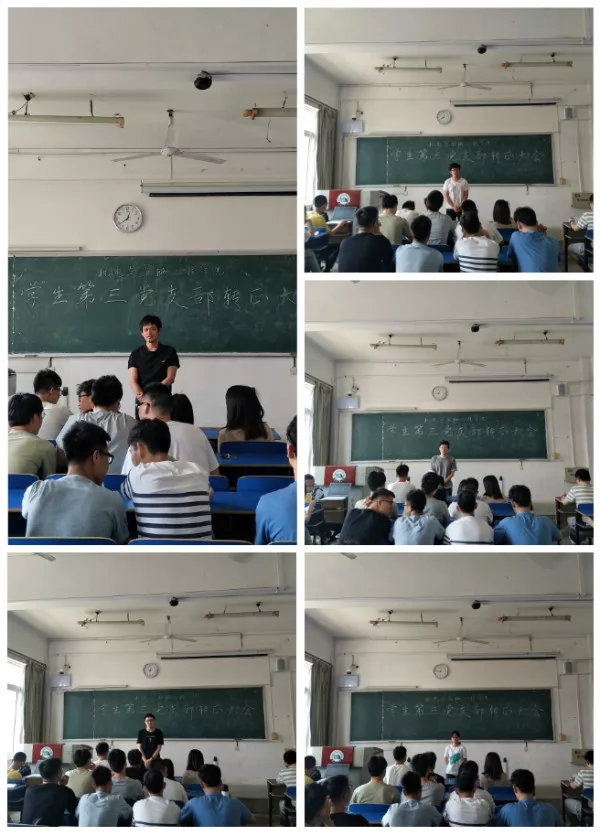 首先进行的是转预大会,经过预审大会评选过后的黄林、李志鹏、胡少华、叶志坚、周鑫辉、罗鹏、张松、杨冰雅、任伟铭9位同学依次上台阐述自确定为入党积极分子以来的个人情况和入党动机,各同学发言完毕之后,经过支部党员举手投票表决意见,最后由党支部书记罗青老师正式宣布黄林、胡少华等9名同志正式成为员工第三党支部预备党员,罗青老师以及支部全体党员同志对以上同学加入党组织表示了祝贺。