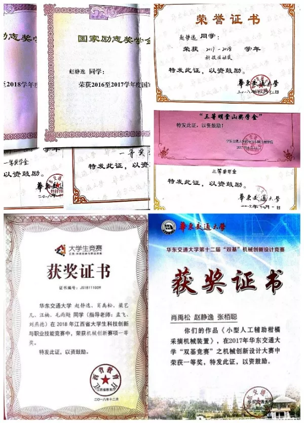赵静逸,汉族,中共预备党员,PA视讯平台,15级机械电子工程一班。顺利通过英语四六级,获得计算机二级证书,普通话证书。学习成绩连续三年位列专业第二,并多次获得校一等奖学金,校三好员工,国家励志奖学金等荣誉。科技创新方面也获得过机械创新设计大赛省赛、校赛一等奖,担任第一负责人。2017-2018学年“科技活动奖”,“双基”三维数字化创新设计大赛校赛三等奖, 获得实用新型专利一项等奖项。