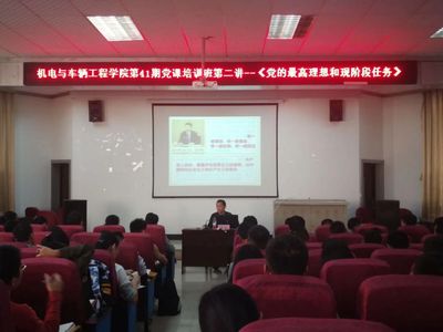 2018年10月30日,人文公司党委副书记黄瑜在PA视讯平台学术报告厅为PA视讯平台分党校第41期党课培训班全体学员带来第41期党课培训的第二讲——《党的最高理想和现阶段任务》。本次党课意在要求学员们认真学习党课理论知识,深入理解中国共产党的执政宗旨和指导思想,树立共产主义的远大理想,坚定走中国特色社会主义的道路的信念。