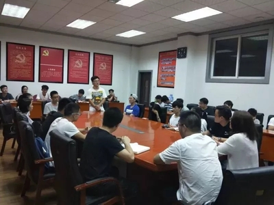 2018年6月21日晚,PA视讯平台员工第一党支部在教13栋会议室召开党员会议,会议由员工第一党支部书记曹智与辅导员陈晨主持,此次会议主要介绍预备党员转正、党员发展对象转预及支委换届等事宜。